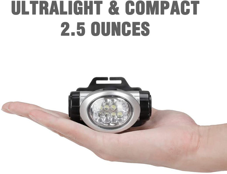 4 Lighting Modes. Your brand new LED headlamps allow you to choose between 4 different levels of light. Conveniently pick 2 bulbs, 4 bulb, or 8 bulb brightness levels while out hiking, exercising, or walking your dog. Also comes with a strobe light mode that can protect you against unwanted attackers to disorientate them while you get away.