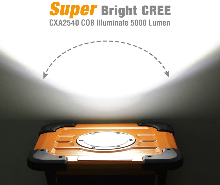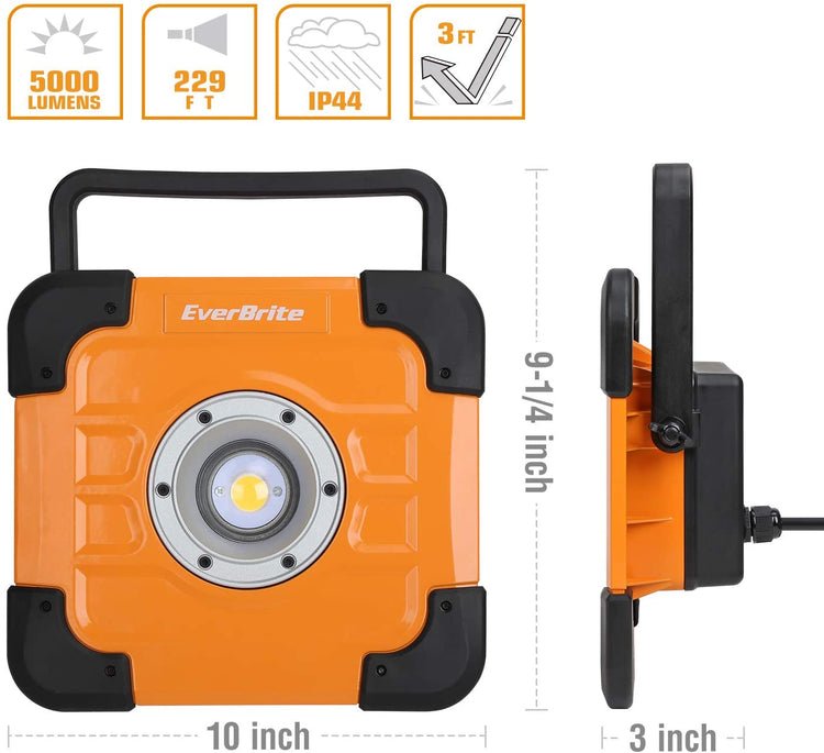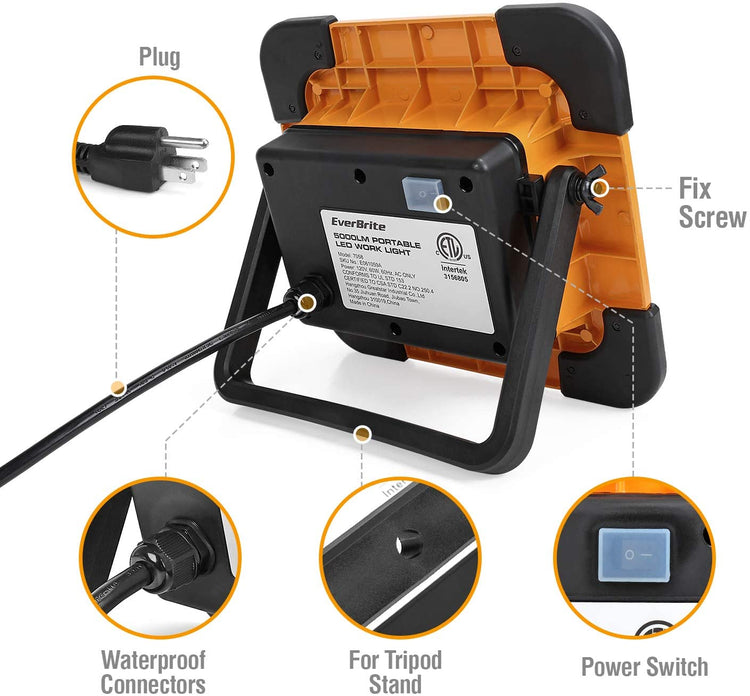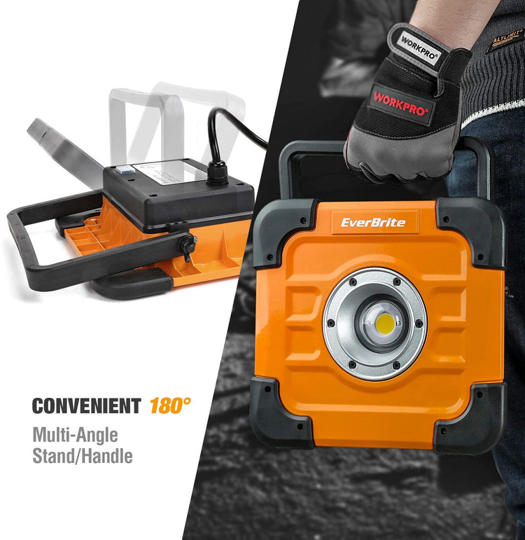EverBrite 60W 5000LM CREE COB Work Light, Portable Aluminium Flood Light with Stand, Adjustable Lighting Angles