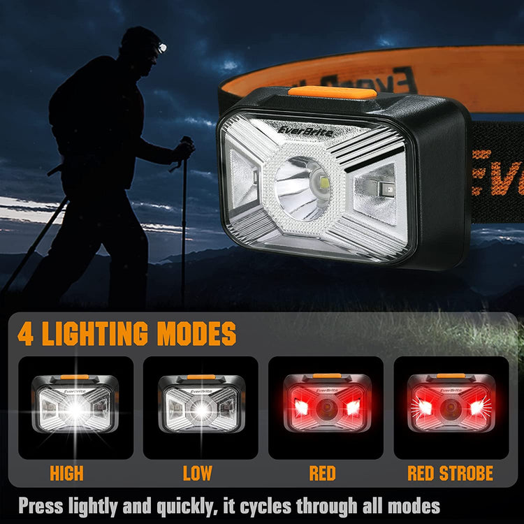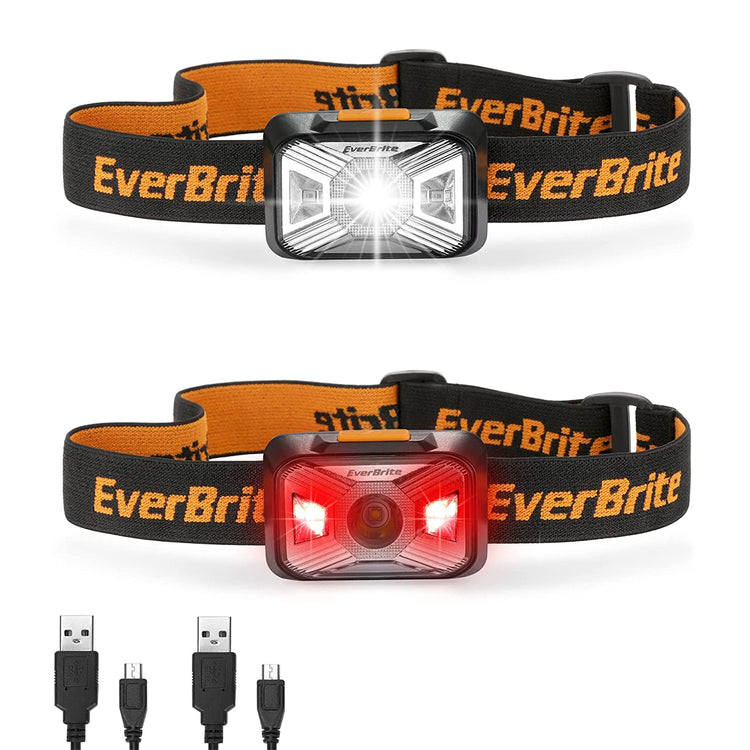 EverBrite 2 Pcs Outdoor LED Flashlight Head Lamps, Waterproof Dustproof Gear for Hiking Camping Essentials