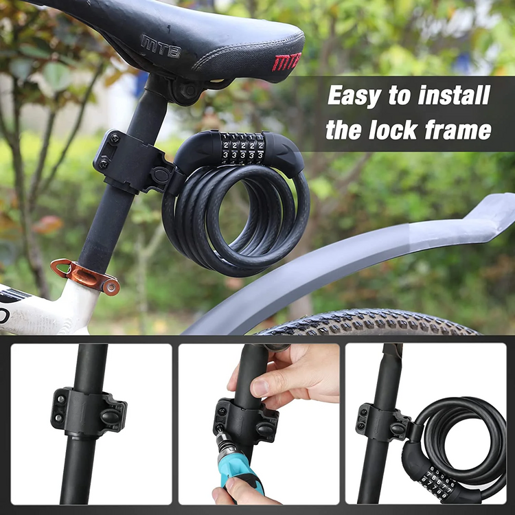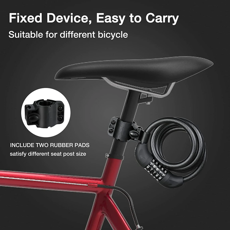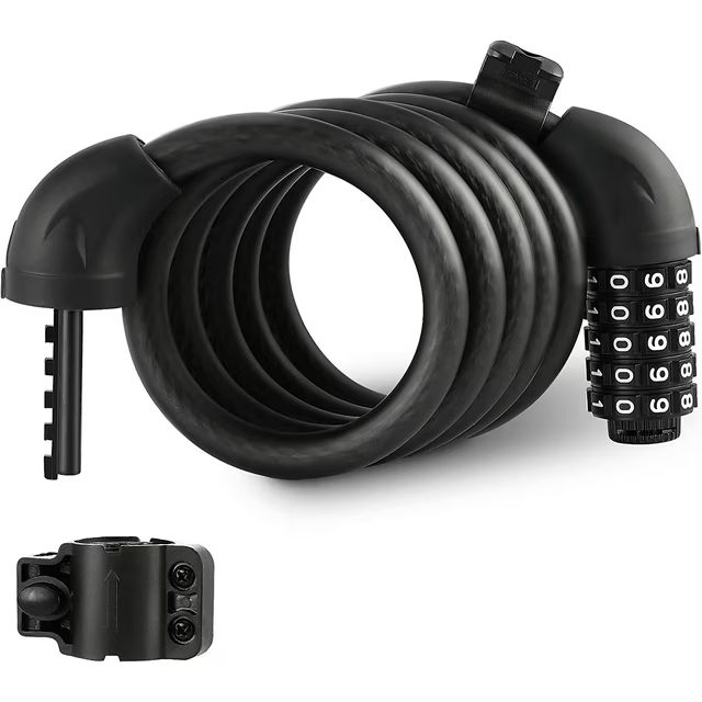 ValueMax 5FT Cable Bike Lock, 5 Digit Resettable Combination Codes, with Secure Mount Bracket, for Bicycle/Scooter/Glass Door (W)