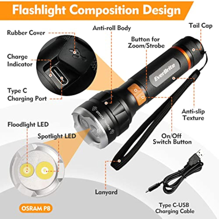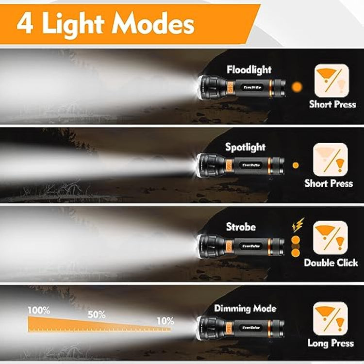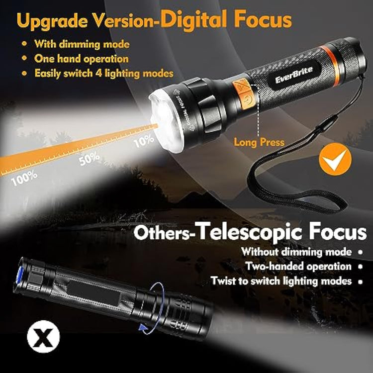EverBrite 1000 Lumens LED Rechargeable Flashlight High Lumens, Zoomable Aluminum Flashlight with Digital Focus, 4 Modes and Water Resistant