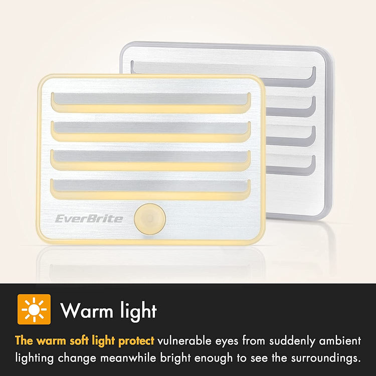 EverBrite 3 Pcs Motion Sensor Night Lights, LED Soft Warm Light, Battery Powered Auto Night Lights