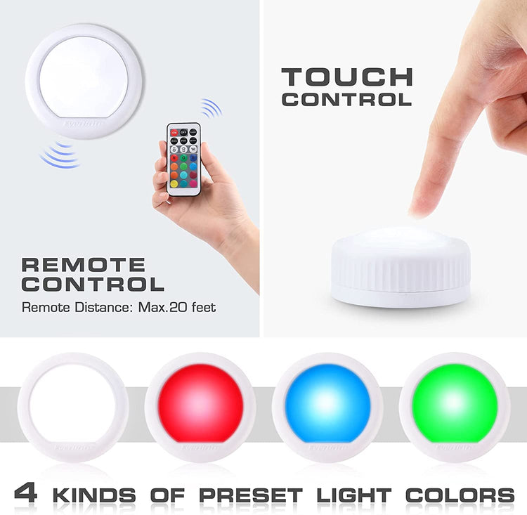 EverBrite Tap Light, Push Light, LED Puck Lights with 12 RGB Colors, Wireless Touch Light Under Cabinet