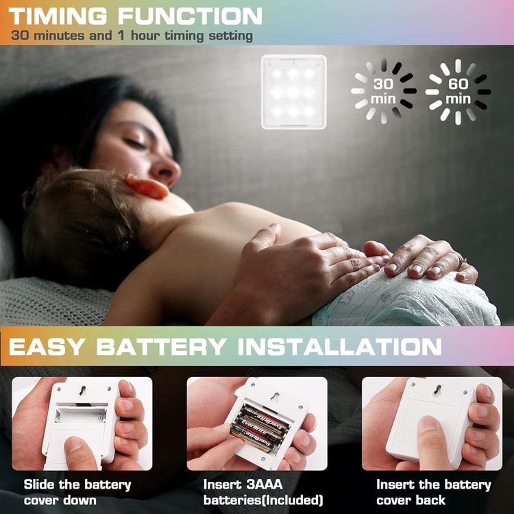 Remote & Manual Control: Quickly turn on/off the lights with 2 remote controls or directly press the lights.