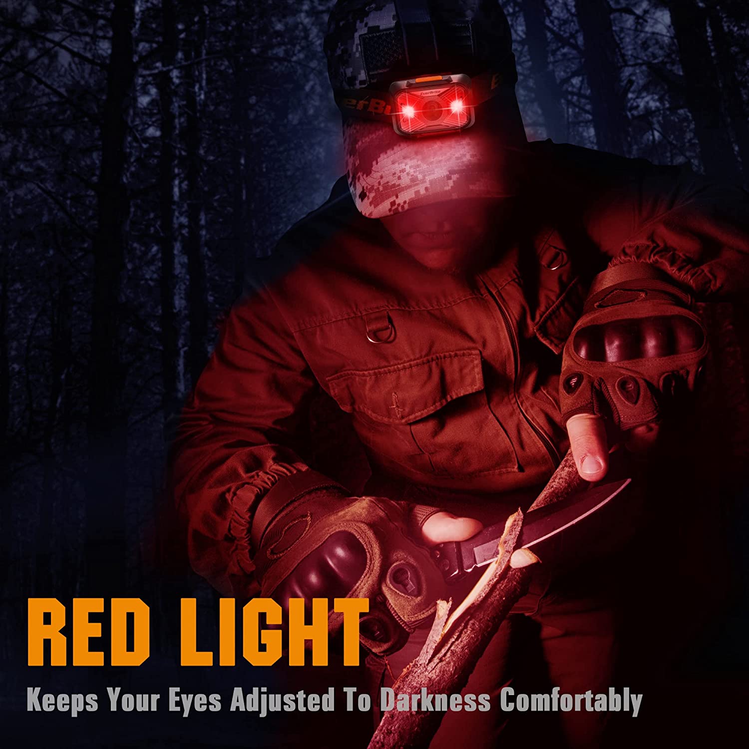 - Our headlamp works very well for sure hunting at night, because preys are not spooked by the red light.