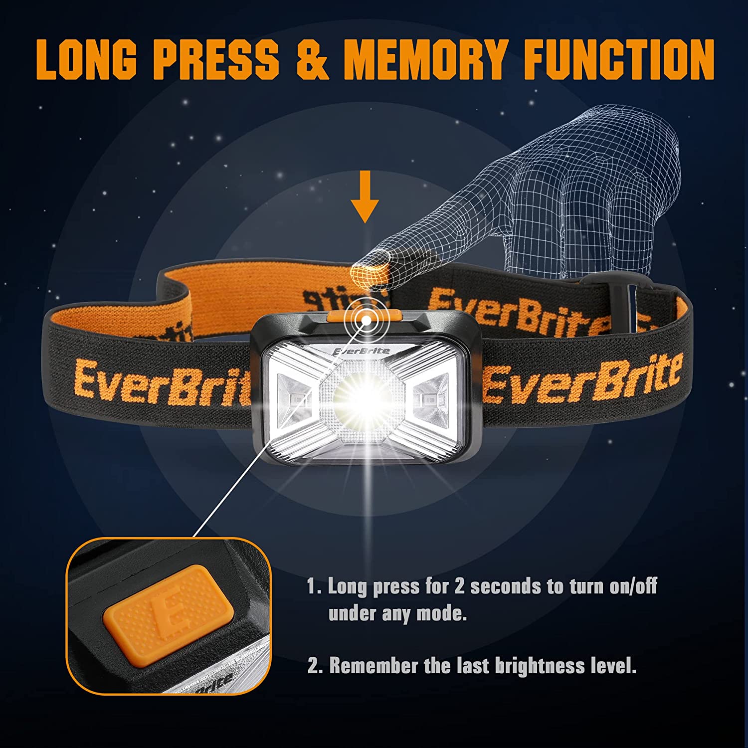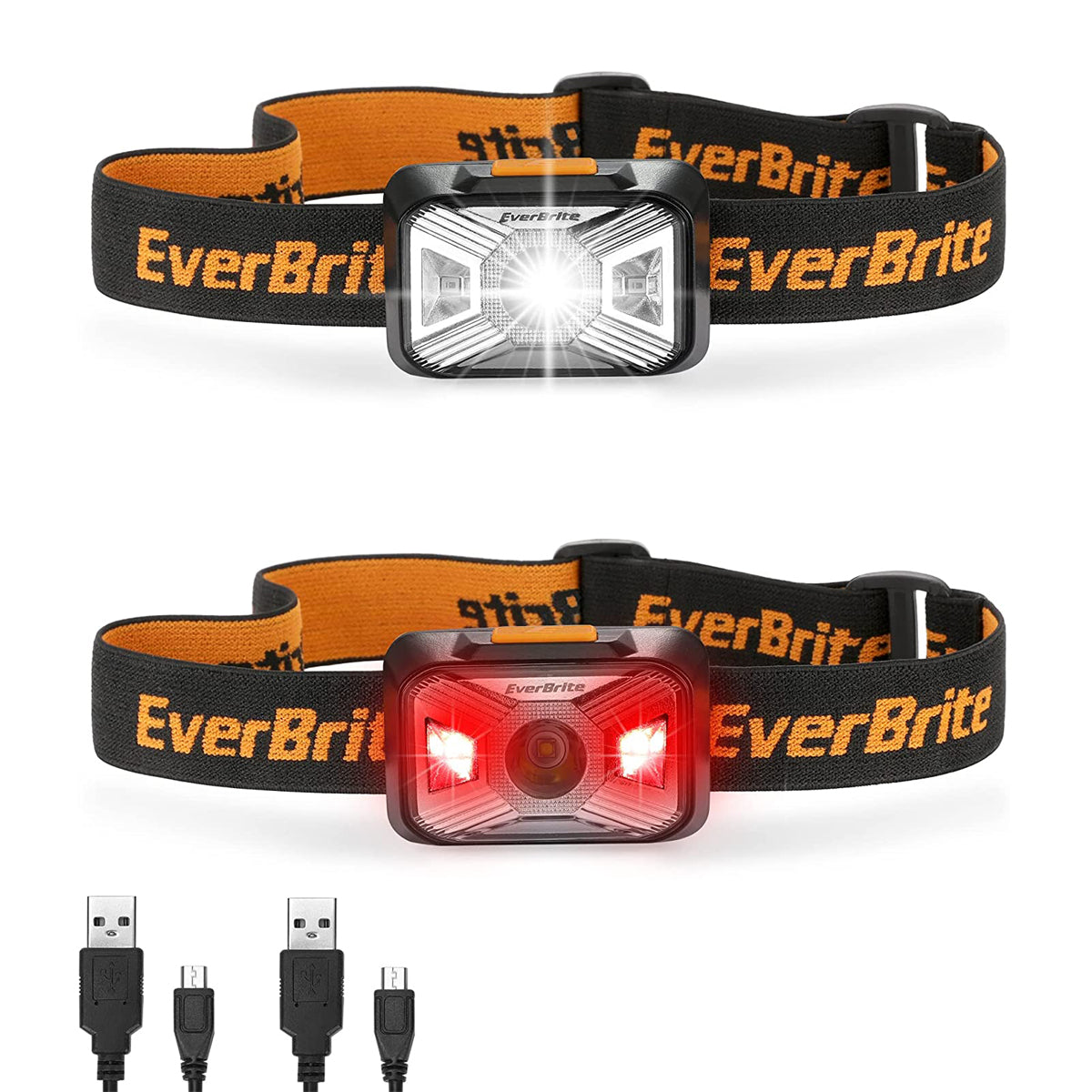 EverBrite 2 Pcs Outdoor LED Flashlight Head Lamps, Waterproof Dustproof Gear for Hiking Camping Essentials