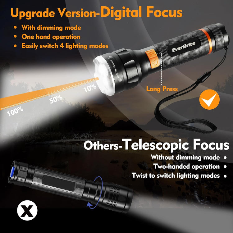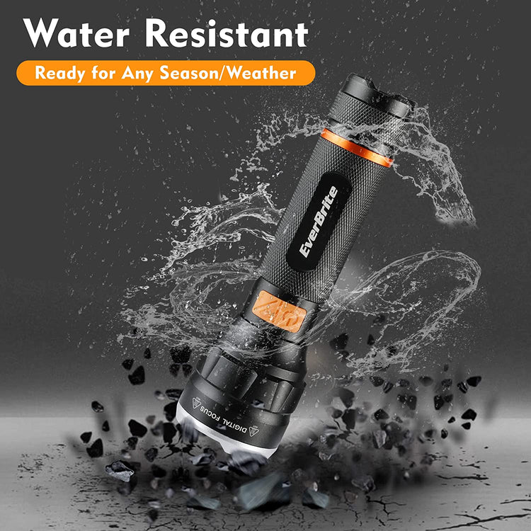 EverBrite LED Flashlight High Lumens, Super Bright, Zoomable Aluminum Flashlight with Digital Focus, 4 Modes, Water Resistant, Adjustable Brightness for Camping, Emergency, AAA Batteries Included