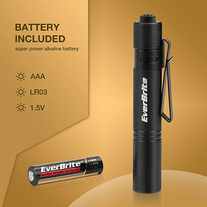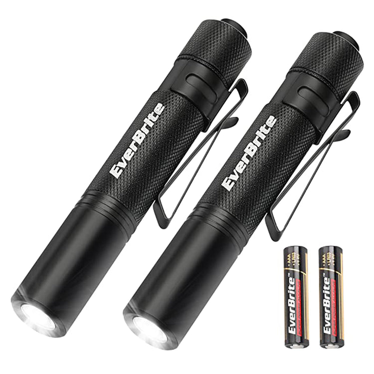 EverBrite 2 Pcs LED Pocket Mini Pen Light Flashlight with High Lumens and 3 Modes, AAA Battery Included