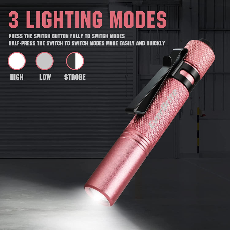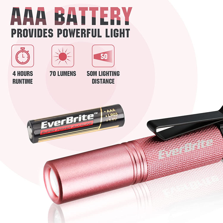 Application: The high lumen LED flashlight is ideal for inspection, work, repair, fishing, camping, night reading, grilling, backpacking, dog walking, hurricane supplies and emergencies. The mini pink pen light is also a perfect gift for your kids, wife, girlfriend, and friends.