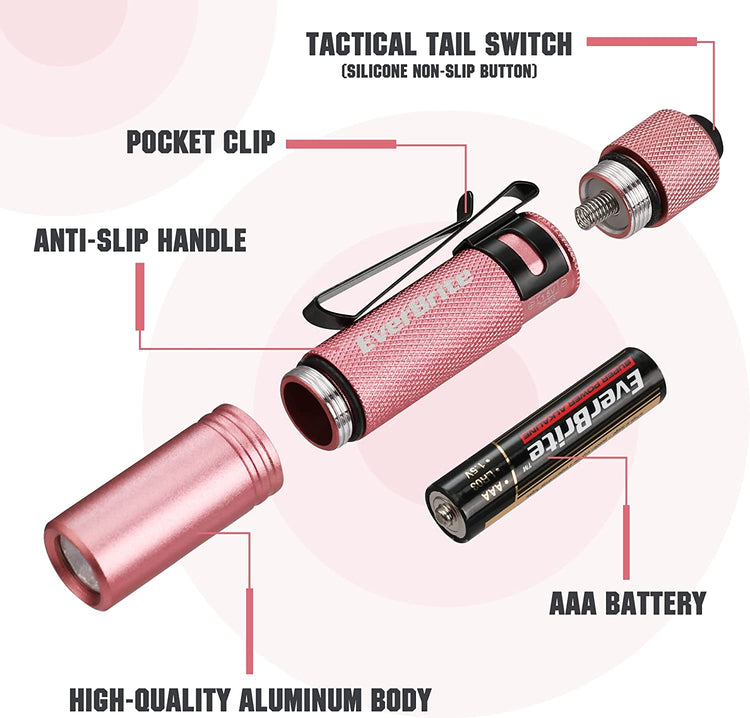 Strong and Durable: This mini pink LED pocket flashlight is made of high quality aluminum, which is more wear-resistant, can withstand accidental drops, and can do all kinds of outdoor work excellently.