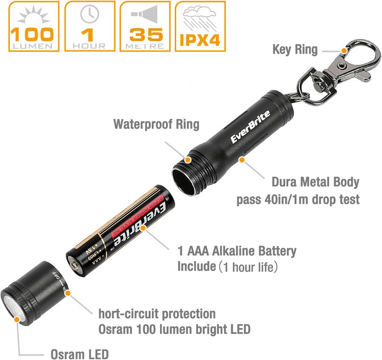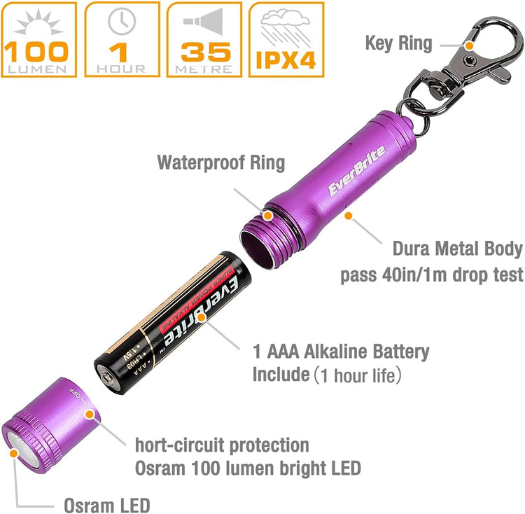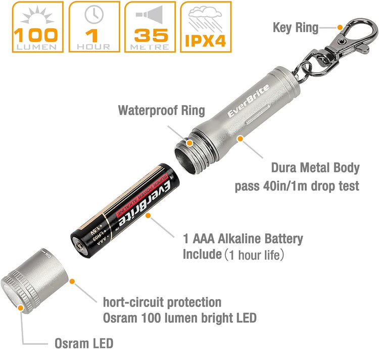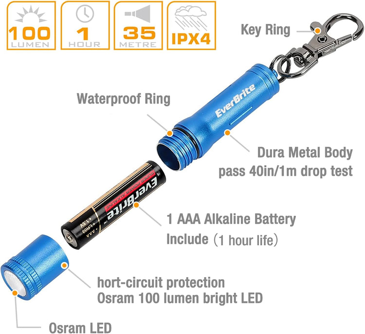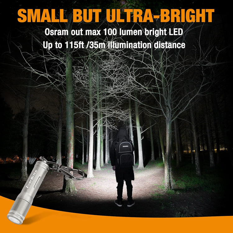 EverBrite Mini LED Keychain Flashlight, High Lumen EDC Pocket Light - Camping, Hiking, Emergency (Battery Include)