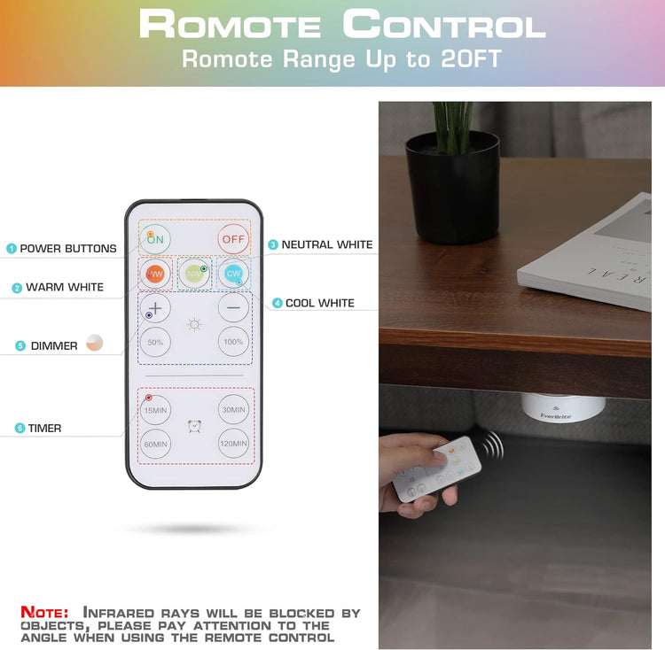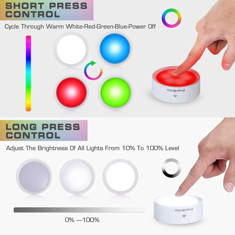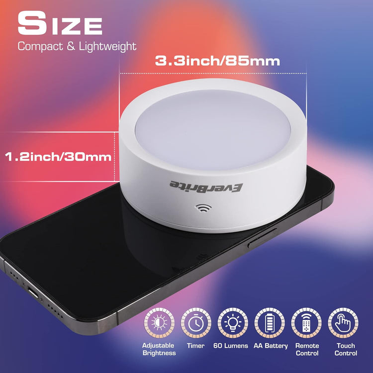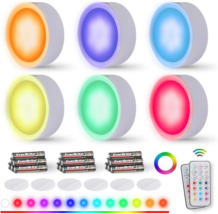 EverBrite Puck Lights with Remote Control, Dimmable Wireless Cabinet Lighting with Timer (Battery Included) 6-Pack