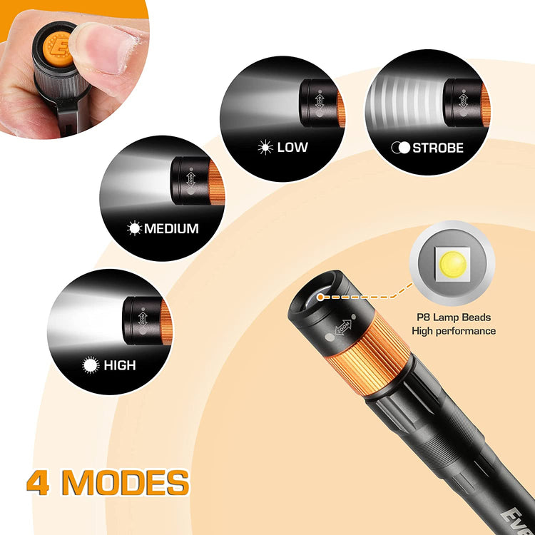 EverBrite Rechargeable Pen Light, Zoomable, Handheld Pocket Flashlight with Clip, IPX4 Waterproof